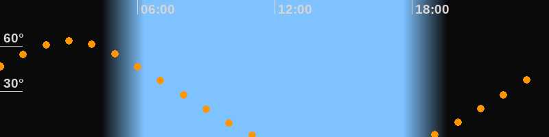 Höchster Stand (Kulmination)03:00 Uhr (h = 63,4°)