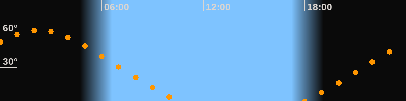 Höchster Stand (Kulmination)02:17 Uhr (h = 63,4°)