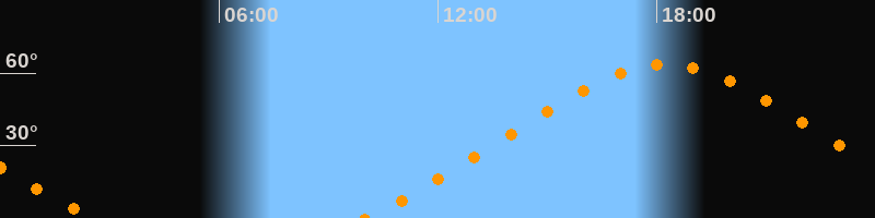 Höchster Stand (Kulmination)18:14 Uhr (h = 63,4°)