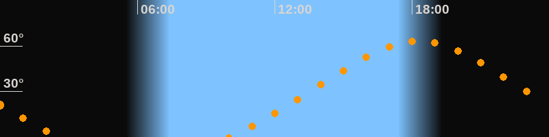 Höchster Stand (Kulmination)18:16 Uhr (h = 63,4°)
