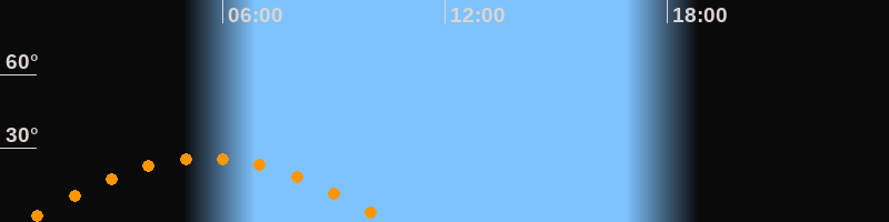 Höchster Stand (Kulmination)05:34 Uhr (h = 26,1°)