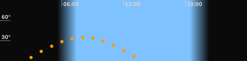Höchster Stand (Kulmination)08:04 Uhr (h = 35°)