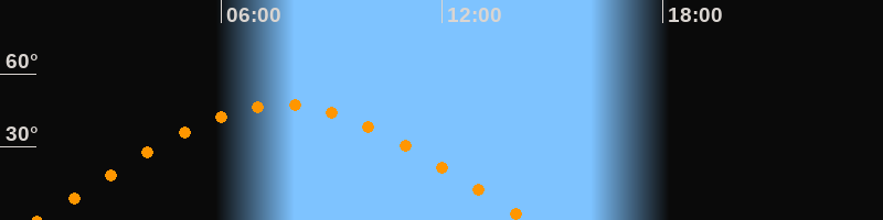 | Höchster Stand (Kulmination) | 07:40 Uhr (h = 47,3°) |