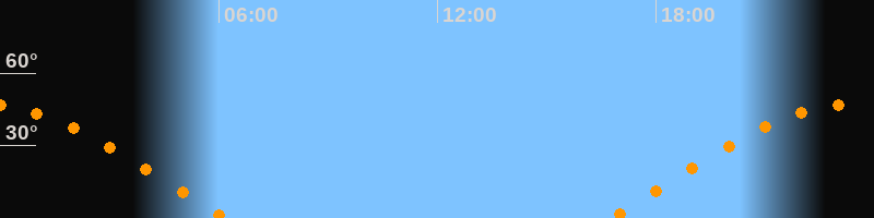 | Aufgang | 16:43 Uhr im Osten (αAz = 76,6°) |