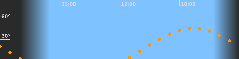 | Untergang | 02:08 Uhr im Westen (αAz = 283,4°) |