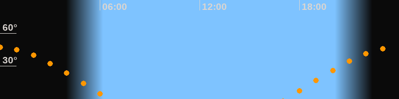 | Untergang | 06:36 Uhr im Westen (αAz = 283,4°) |