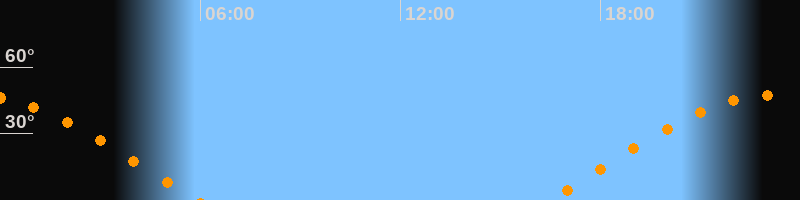 | Untergang | 05:55 Uhr im Westen (αAz = 283,4°) |