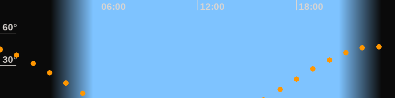| Aufgang | 16:03 Uhr im Osten (αAz = 76,6°) |