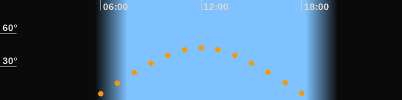 | Höchster Stand (Kulmination) | 12:01 Uhr (h = 47,3°) |