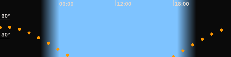 | Aufgang | 17:54 Uhr im Osten (αAz = 76,6°) |