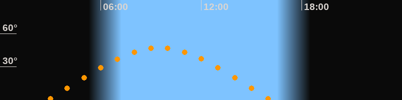 | Höchster Stand (Kulmination) | 09:30 Uhr (h = 47,3°) |