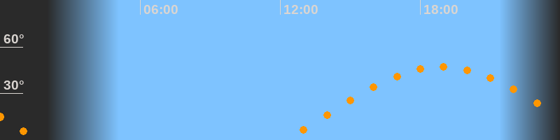 | Höchster Stand (Kulmination) | 18:54 Uhr (h = 47,3°) |