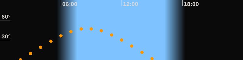 | Höchster Stand (Kulmination) | 08:36 Uhr (h = 47,3°) |