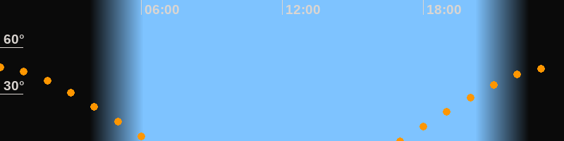 | Untergang | 06:24 Uhr im Westen (αAz = 283,4°) |