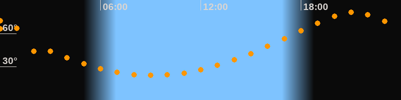 Höchster Stand (Kulmination)21:07 Uhr (h = 79,1°)