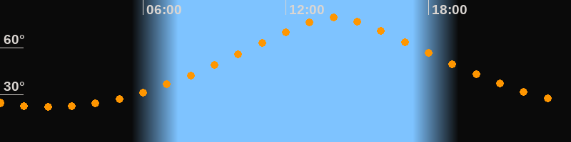 Höchster Stand (Kulmination)14:03 Uhr (h = 79,1°)