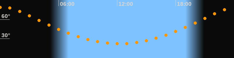 Höchster Stand (Kulmination)00:14 Uhr (h = 79,1°)