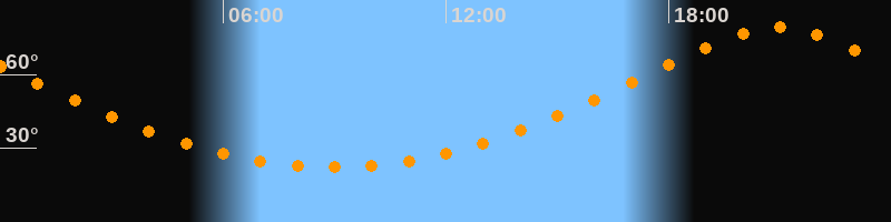 Höchster Stand (Kulmination)20:56 Uhr (h = 79,1°)