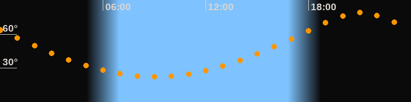 Höchster Stand (Kulmination)21:01 Uhr (h = 79,1°)