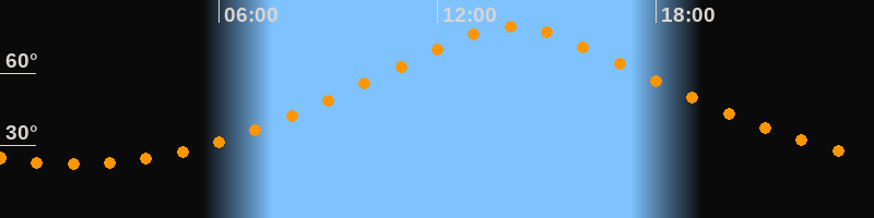 Höchster Stand (Kulmination)14:04 Uhr (h = 79,1°)