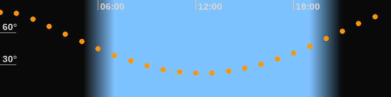 Höchster Stand (Kulmination)00:16 Uhr (h = 79,1°)