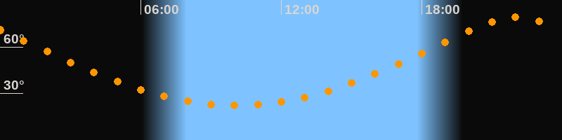 Höchster Stand (Kulmination)22:02 Uhr (h = 79,1°)