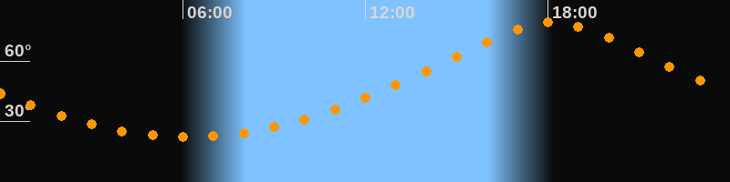 Höchster Stand (Kulmination)18:09 Uhr (h = 79,1°)