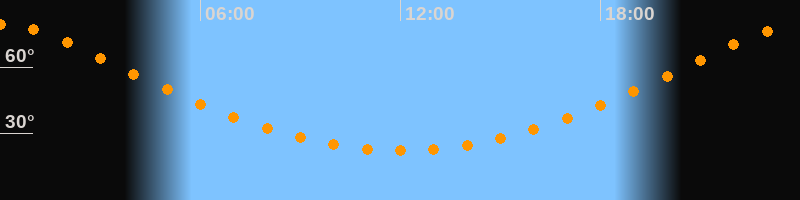 Höchster Stand (Kulmination)00:01 Uhr (h = 79,1°)