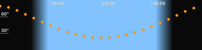 Höchster Stand (Kulmination)00:06 Uhr (h = 79,1°)