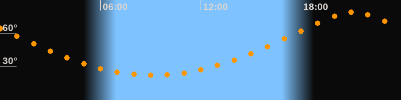 Höchster Stand (Kulmination)21:08 Uhr (h = 79,1°)