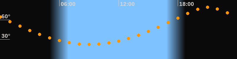 Höchster Stand (Kulmination)21:04 Uhr (h = 79,1°)