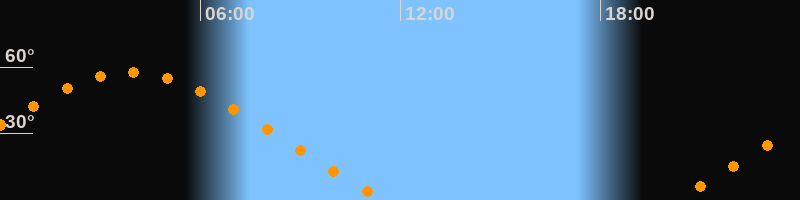 | Untergang | 11:32 Uhr im Nordwesten (αAz = 300,3°) |