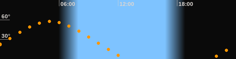 | Höchster Stand (Kulmination) | 05:06 Uhr (h = 57,4°) |