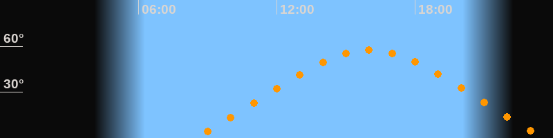 | Untergang | 23:38 Uhr im Nordwesten (αAz = 300,3°) |