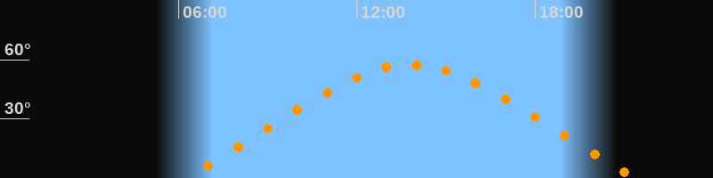 | Aufgang | 06:10 Uhr im Nordosten (αAz = 59,7°) |