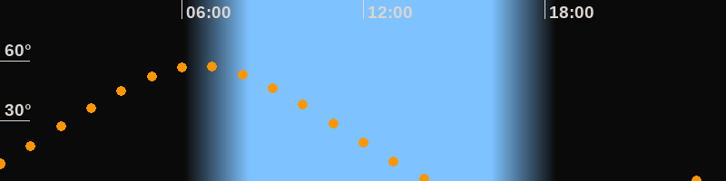 | Höchster Stand (Kulmination) | 06:34 Uhr (h = 57,4°) |