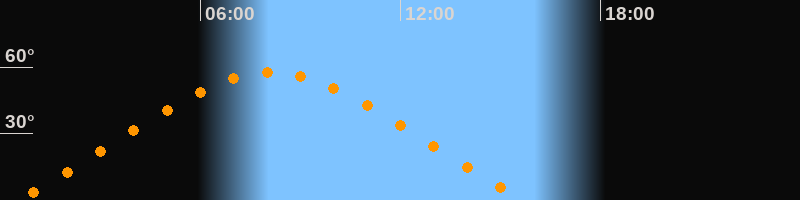 | Höchster Stand (Kulmination) | 08:07 Uhr (h = 57,4°) |