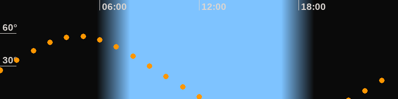 | Untergang | 12:20 Uhr im Nordwesten (αAz = 300,3°) |
