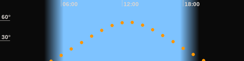 | Höchster Stand (Kulmination) | 12:33 Uhr (h = 57,4°) |