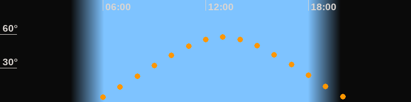 | Höchster Stand (Kulmination) | 13:02 Uhr (h = 57,4°) |