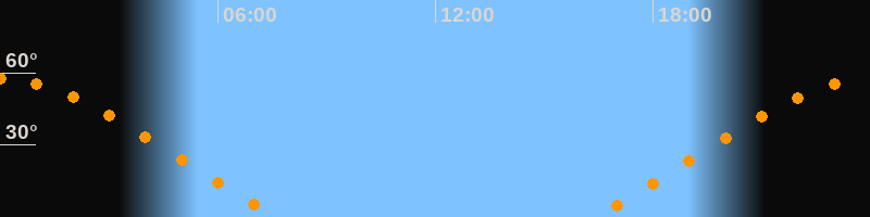 | Aufgang | 16:22 Uhr im Nordosten (αAz = 59,7°) |