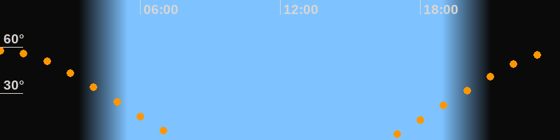 | Aufgang | 16:28 Uhr im Nordosten (αAz = 59,7°) |