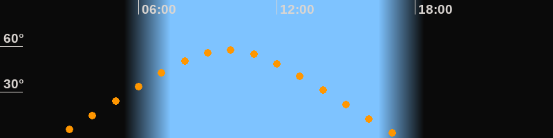 | Aufgang | 02:14 Uhr im Nordosten (αAz = 59,7°) |