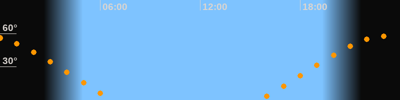 | Aufgang | 15:30 Uhr im Nordosten (αAz = 59,7°) |