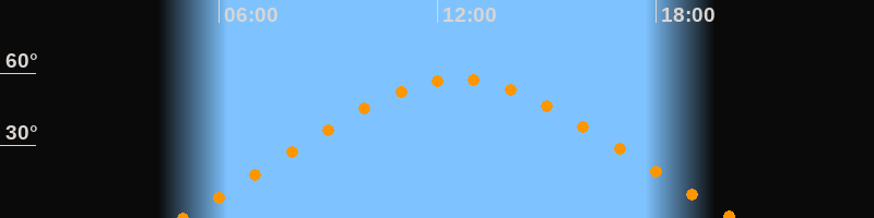 | Höchster Stand (Kulmination) | 12:34 Uhr (h = 57,4°) |
