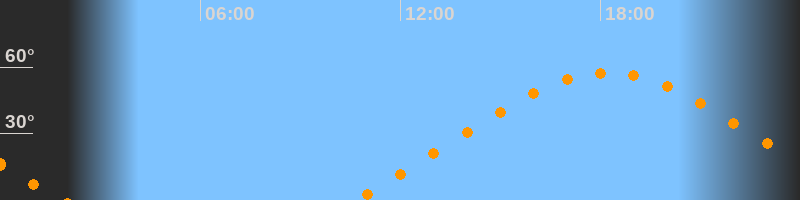 | Höchster Stand (Kulmination) | 18:13 Uhr (h = 57,4°) |