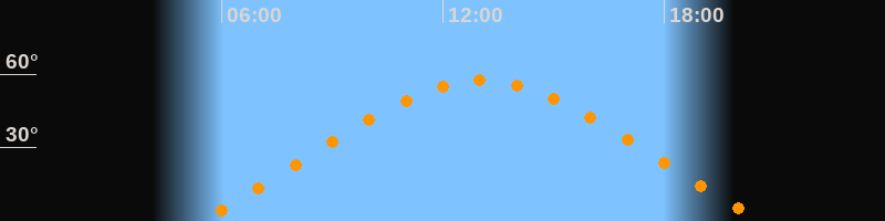 | Höchster Stand (Kulmination) | 13:03 Uhr (h = 57,4°) |