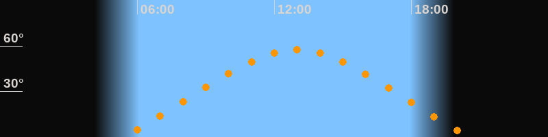 | Höchster Stand (Kulmination) | 12:59 Uhr (h = 57,4°) |