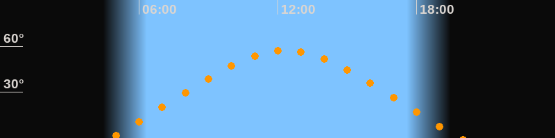 | Höchster Stand (Kulmination) | 12:19 Uhr (h = 57,4°) |