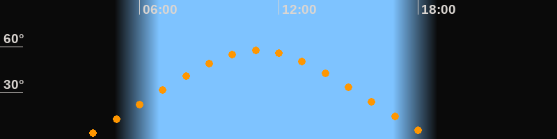 | Aufgang | 03:28 Uhr im Nordosten (αAz = 59,7°) |